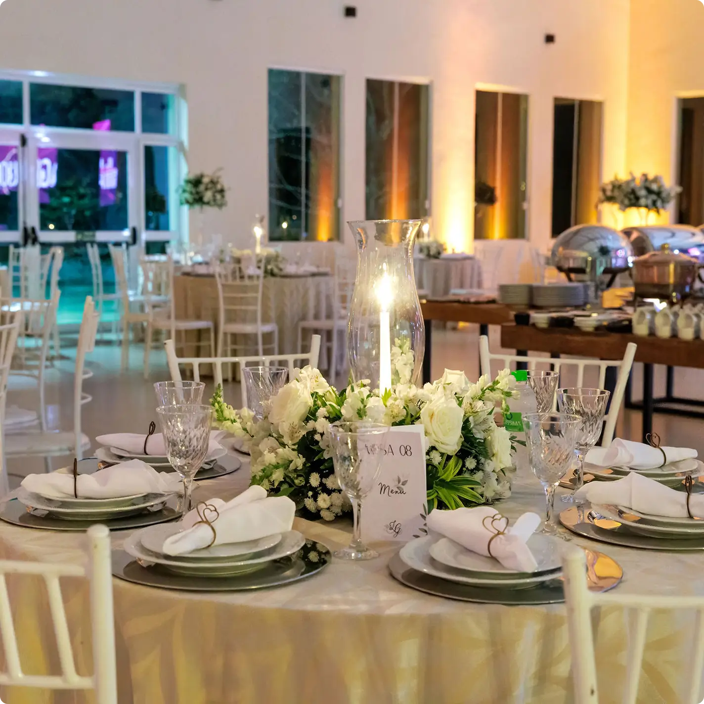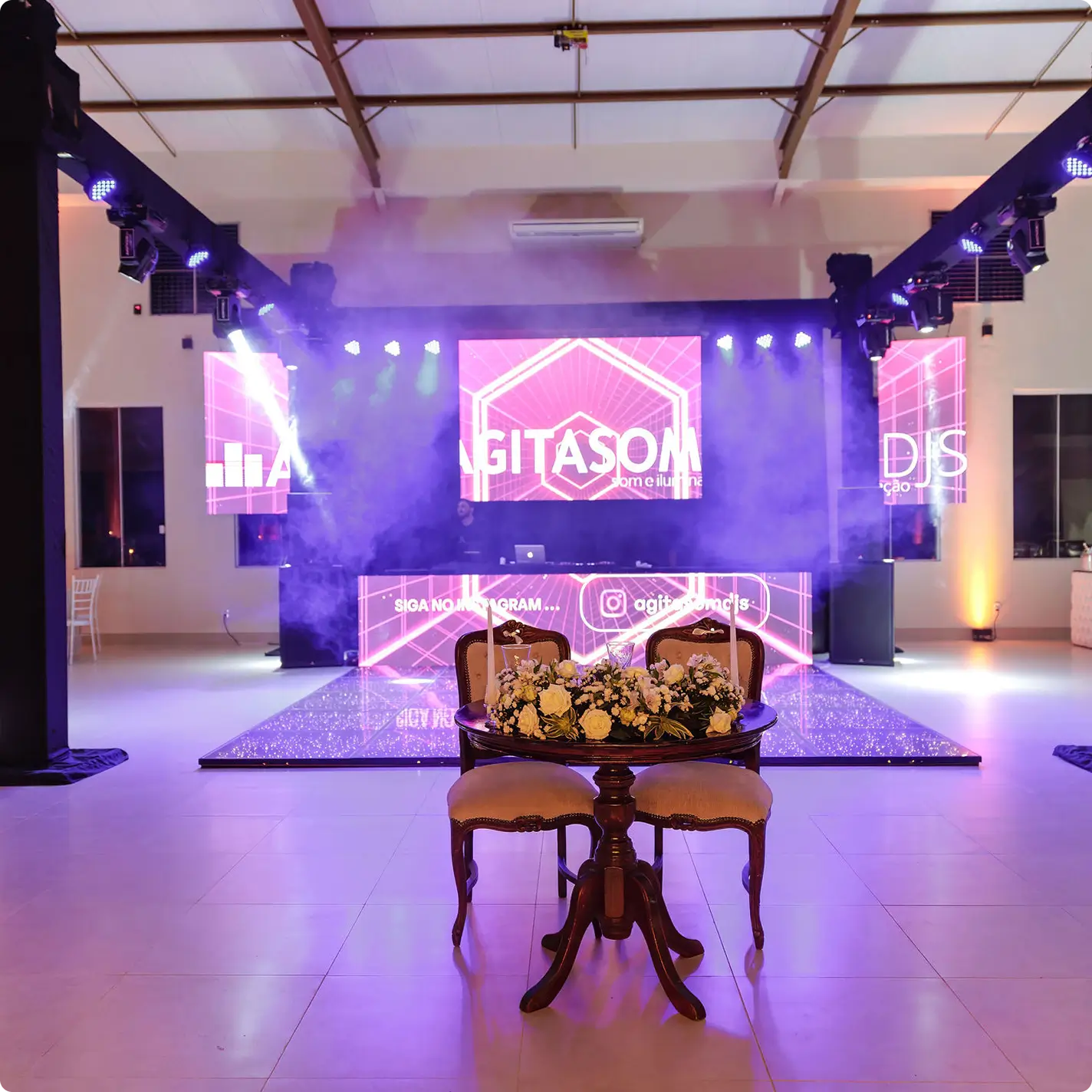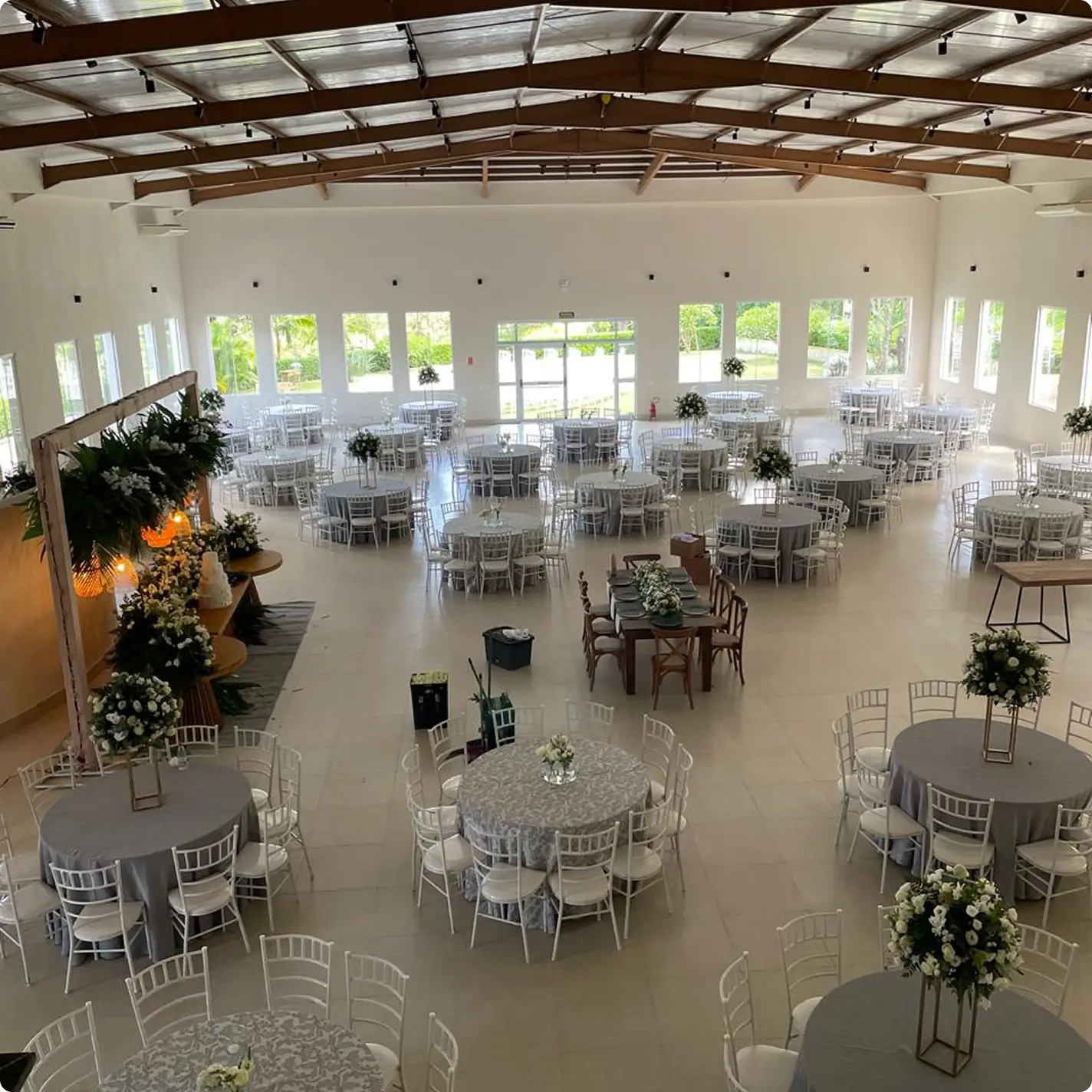 Nosso salão climatizado combina sofisticação e conforto. Com arquitetura ampla, iluminação elegante e infraestrutura completa, é o ambiente ideal para recepções luxuosas, festas animadas ou celebrações que pedem praticidade sem perder o charme.